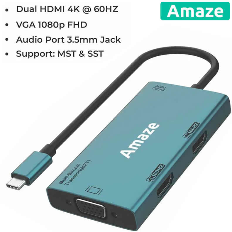 Amaze A324 – Type C To Dual HDMI + VGA + AUDIO Hub