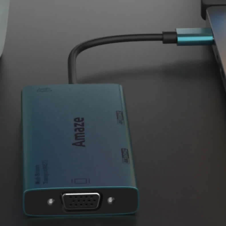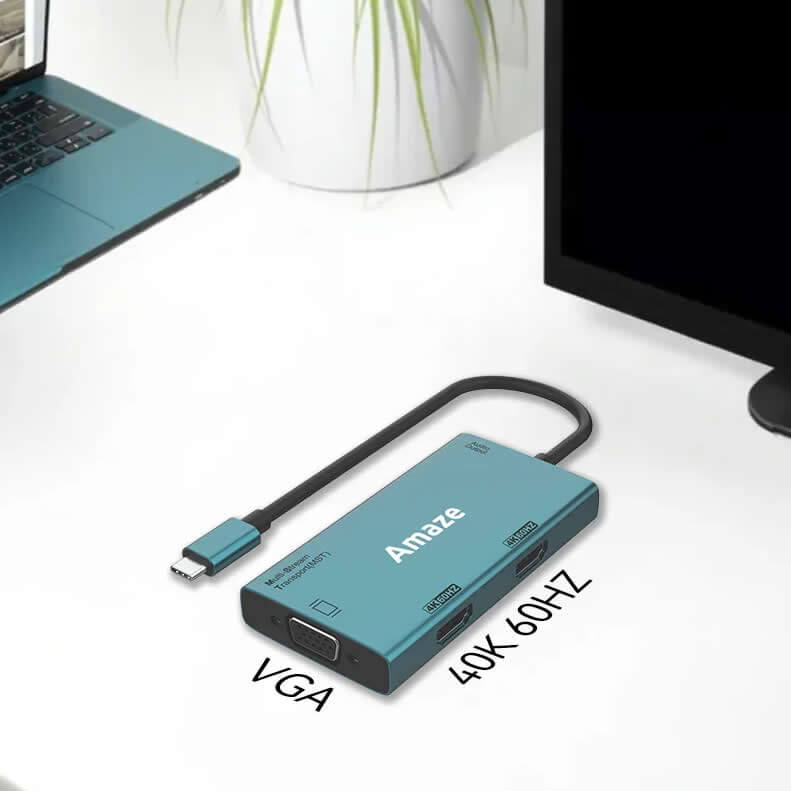 The Amaze Type C to Dual HDMI + VGA + Audio Hub A324 is designed to enhance productivity by allowing multiple connections through a single USB Type-C port.