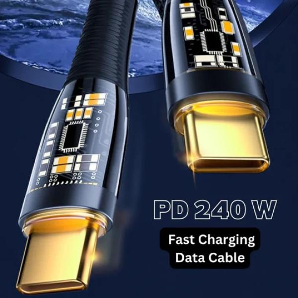 The Aspor A153 Type-C to Type-C Fast Charging Cable delivers an impressive 240W of power, making it ideal for high-performance devices like laptops, tablets, and smartphones. Its built-in LED light adds a stylish glow while helping you locate the cable in low-light environments. Whether you’re working late or charging overnight, this cable brings both speed and visibility.