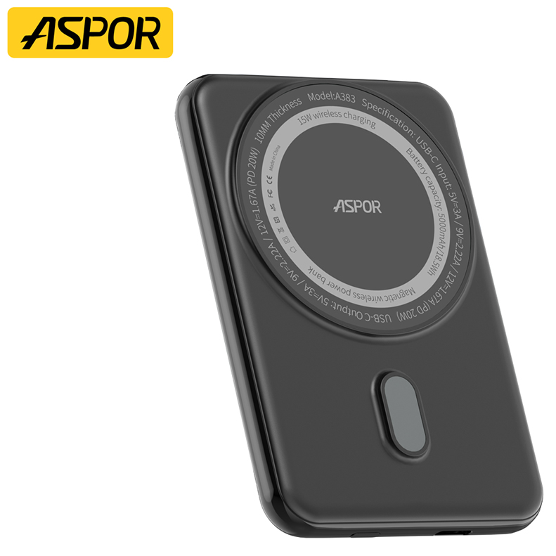 The Aspor A385 PowerBank delivers 10000mAh of reliable backup power in a sleek, travel-ready design. With 15W wireless charging and 20W Type-C fast output, it’s built for modern smartphones including iPhone models with Magsafe support.