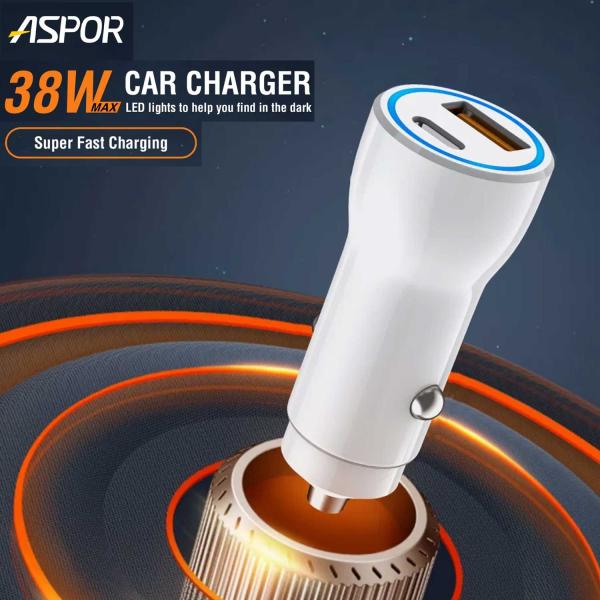 The Aspor A910 Fast Car Charger is built for speed and durability. With dual ports (USB and Type-C), it supports PD and QC3.0 fast charging protocols, delivering up to 38W of power to keep your devices charged while you’re on the move. Its sleek aluminum metal body adds a premium touch to your car interior, while advanced safety features protect your devices from overcharging and short circuits.