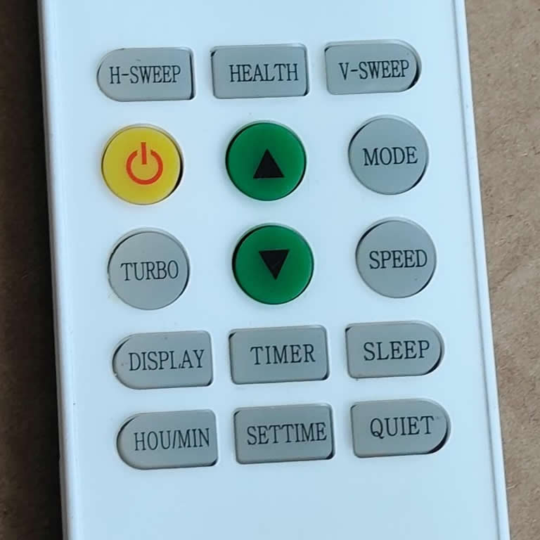 | Buttons | Turbo, Sleep, Timer, Quiet, Health, etc. |