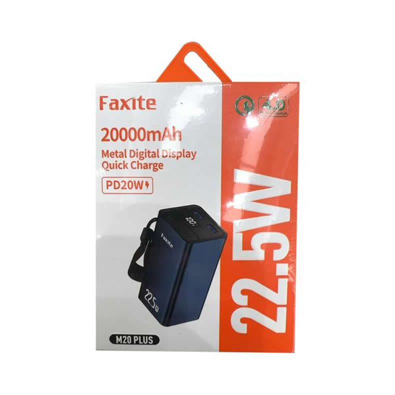 Faxite M20Plus 20000mAh 22.5W Metal Power Bank with Digital Display – Quick Charge 4.0 & PD Support