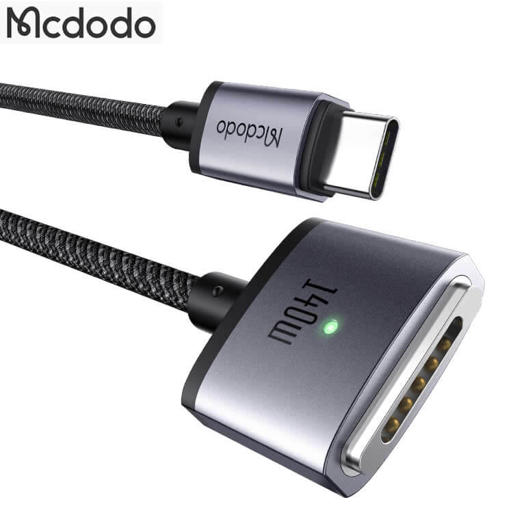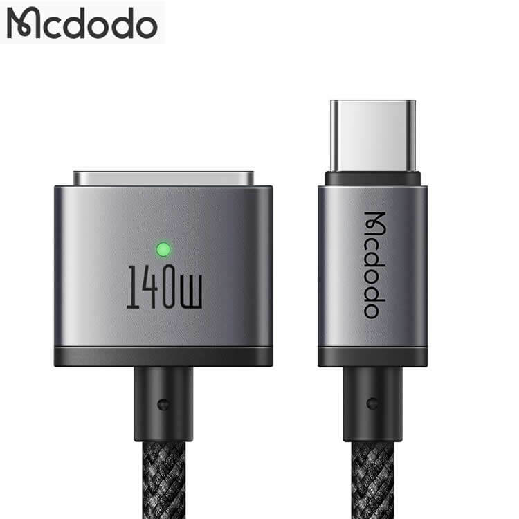 The Mcdodo CA-147 Magnetic Charging Cable delivers up to 140W of PD fast charging via a USB-C to MagSafe 3 connector. Designed specifically for Mac notebooks, its magnetic tip ensures precise alignment with the charging port, while the LED indicator shows charging status—amber for charging, green when full.