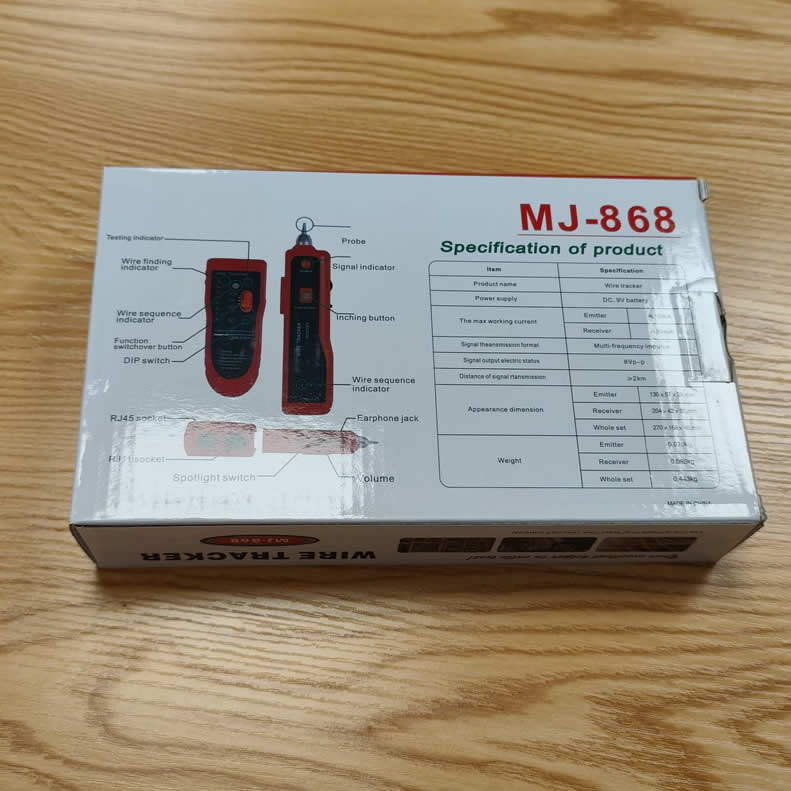 Its emitter-receiver system allows for fast identification of cable pairs, even in complex wiring environments. With built-in LED indicators, low-voltage safety limits, and an earphone for noisy settings, the MJ-868 is ideal for fieldwork, office installations, and telecom diagnostics.