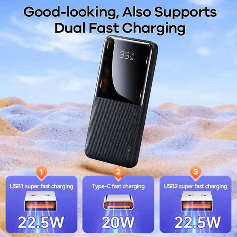 Remax RPP-622 10000mAh Power Bank – 22.5W + 20W PD & QC Fast Charging with LED Display – Black