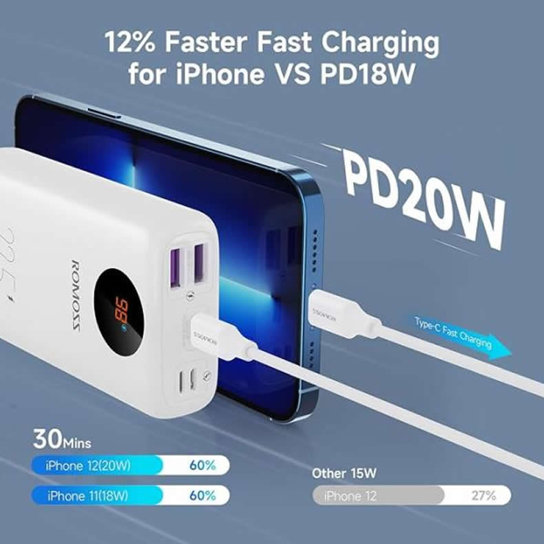 - Type-C PD20W – fast charge iPhone 12 to 60% in 30 minutes