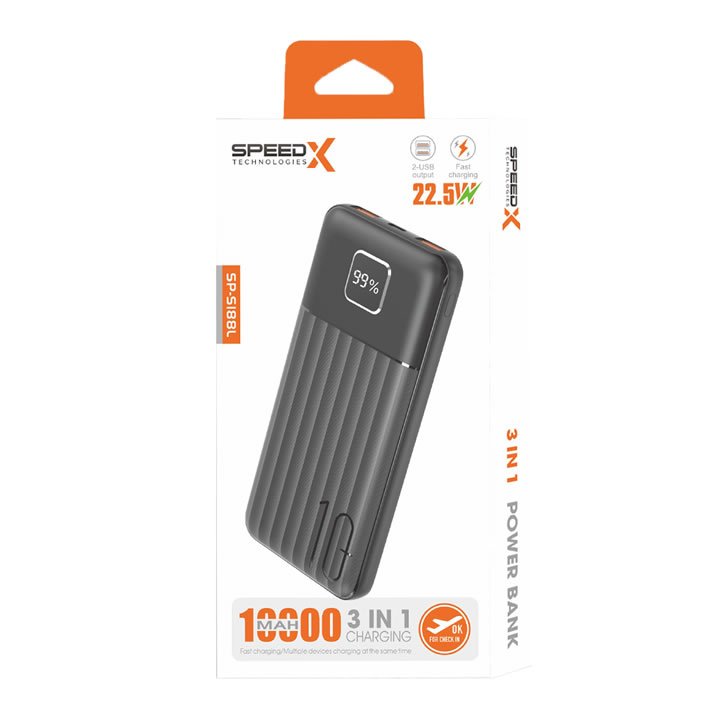 - Speedx 22.5W 10000 mAh Fast Charging Power Bank SP-S188L for reliable power on the move
