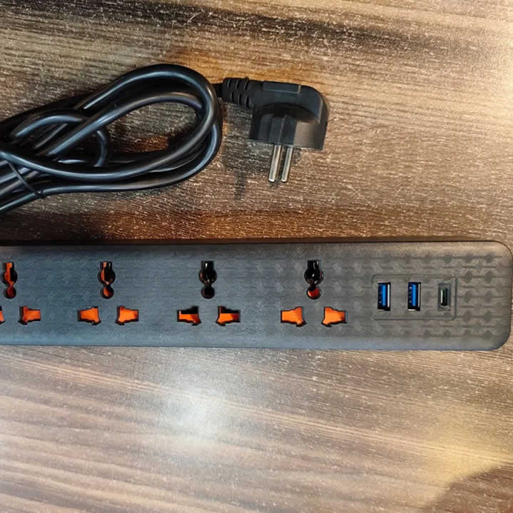 The power extension is designed to simplify your power needs. With 4 universal sockets, 2 USB charging ports, and 1 Type C charging port, it allows multiple devices to be powered simultaneously – useful for home, office, or travel use.