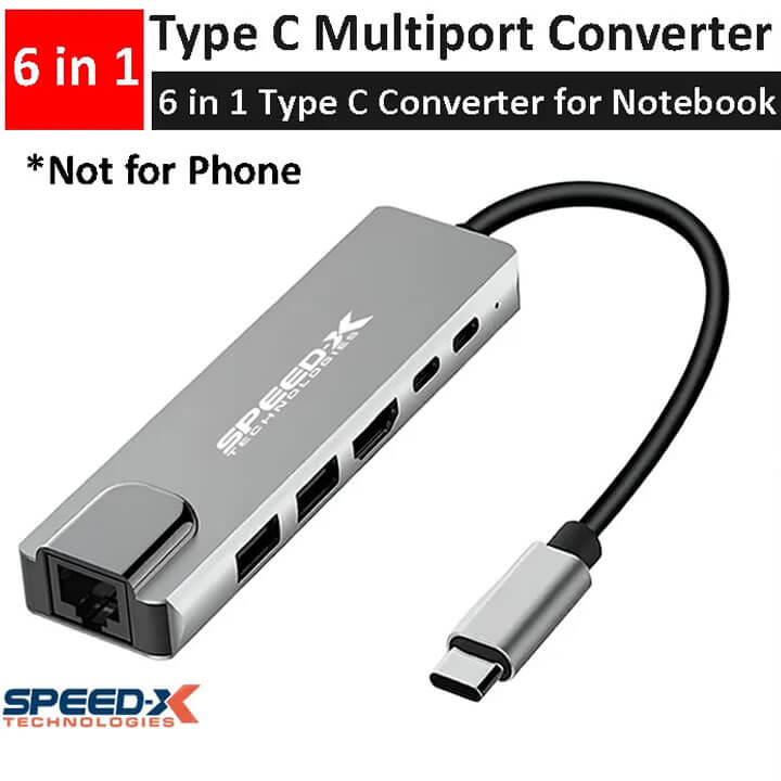 Boost Your Productivity Connect multiple devices to your laptop or tablet with this compact and powerful 6-in-1 Type-C adapter.