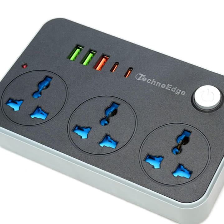 Say goodbye to cluttered charging setups. The TechnoEdge is your all-in-one power station, combining 3 universal sockets with 3 USB ports and 2 fast Type C ports-useful for powering up devices.