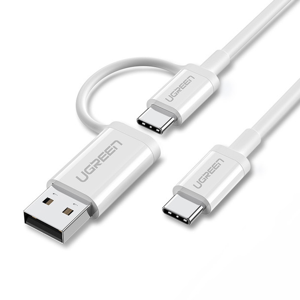 UGREEN US264 1M USB-C to USB-C + USB-A Cable – 60W Fast Charge, White